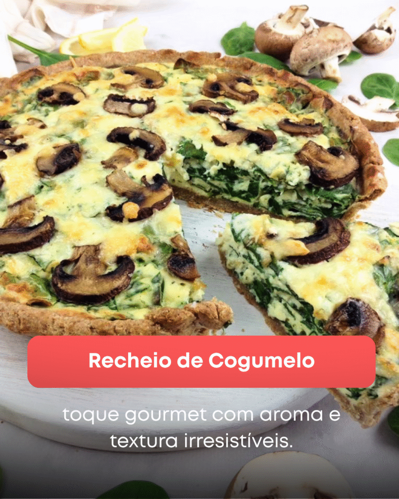 Do clássico Recheio Lorraine às versões contemporâneas com palmito, cogumelos e ricota, cada prato é um convite para transformar sua cozinha em um verdadeiro bistrô francês — saudável, artesanal e cheio de prazer.